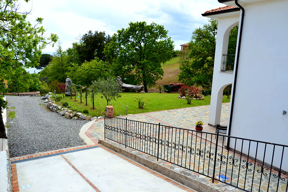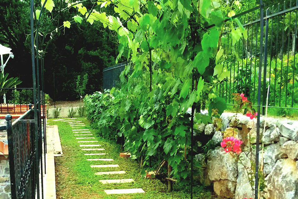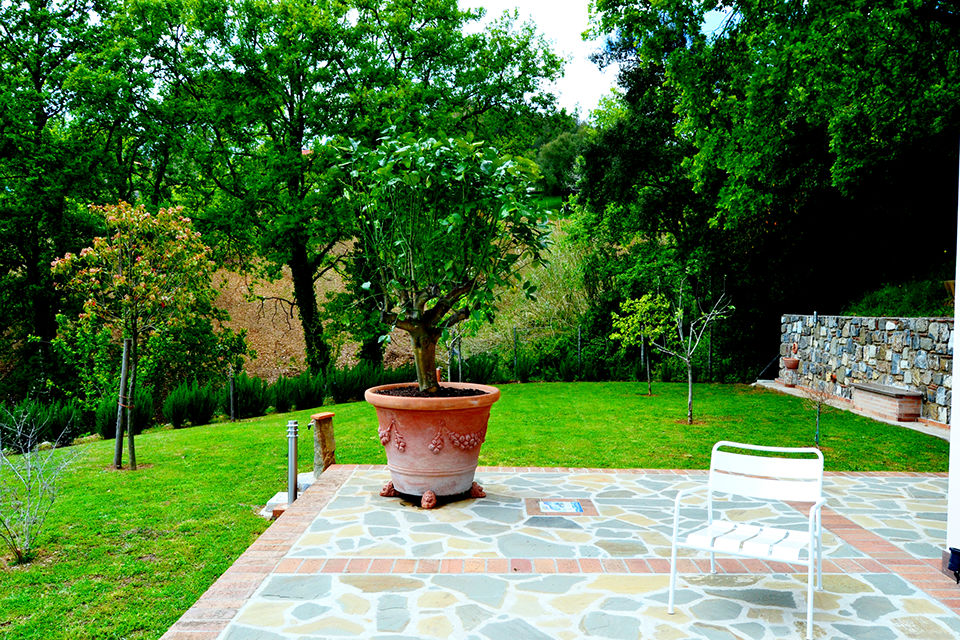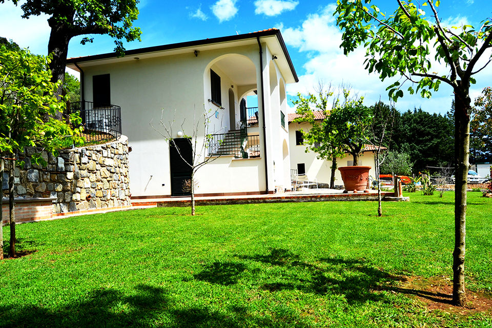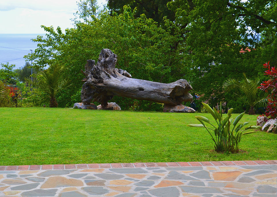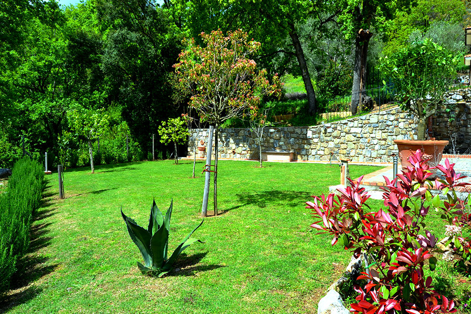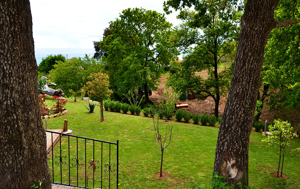 La struttura poggia su un verde giardino con piante ornamentali e alberi da frutta, immerso in un’atmosfera intima e suggestiva. Un’oasi accogliente, dove gli ospiti amano sostare per tutto l’anno e godere del fresco della sera, specie durante l’estate, che qui dura molto di più rispetto al resto d’Italia, per l’incomparabile micro-clima del golfo.